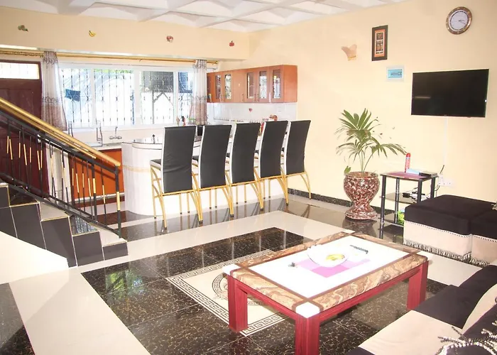 The 3-bedroom Kay'S Residence, Bamburi Mombasa villa is located within a 6-km distance of the Wild Waters water park and allows guests to enjoy darts. Featuring a terrace, the Mombasa villa is situated nearly a 10-minute drive from the Nguuni Nature Sanctuary.