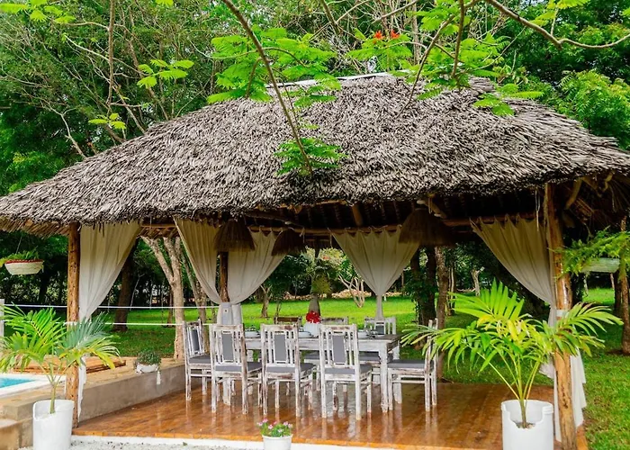 La Kikambala Eco Villas Mombasa si trova a soli 3 km da Jumba La Mtwana e offre agli ospiti la possibilità di godersi la serata su un patio con piscina. Situata nel distretto Bamburi Beach, la villa dispone di una piscina all'aperto, che offre relax agli ospiti.